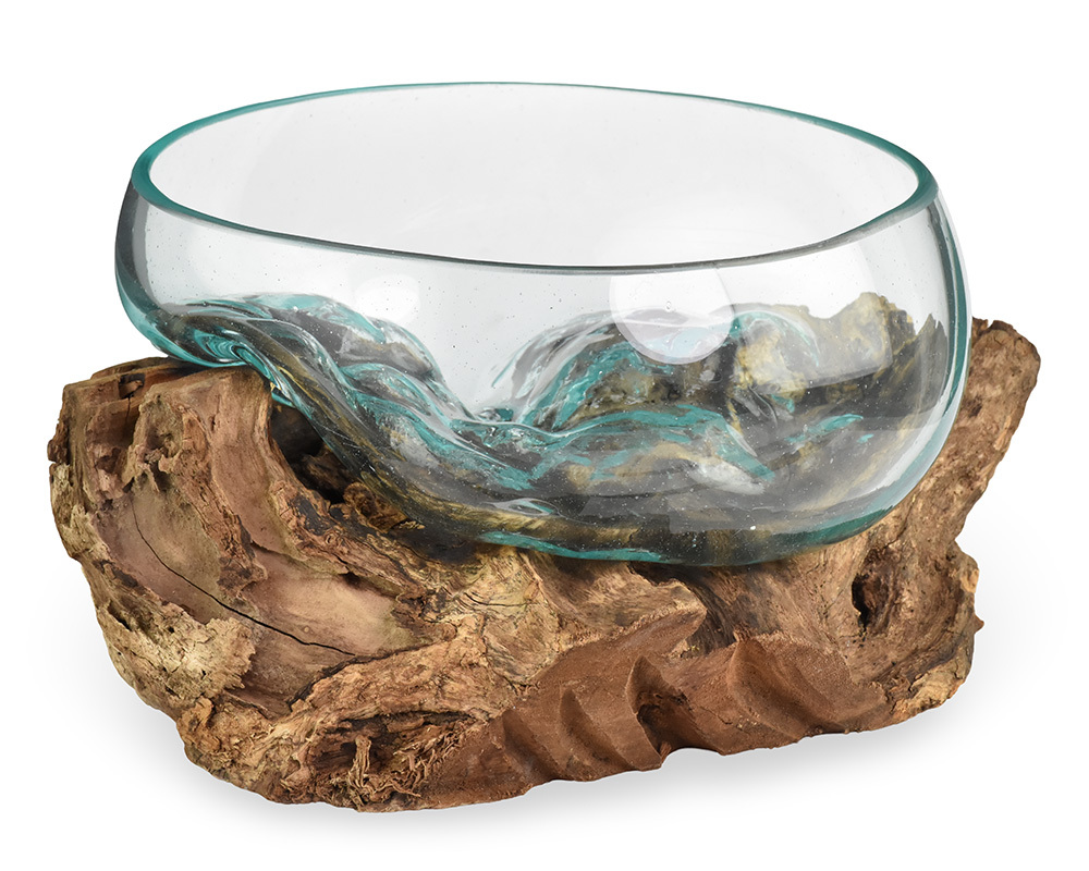 Skleněná mísa na dřevě 20 cm velká - var. S