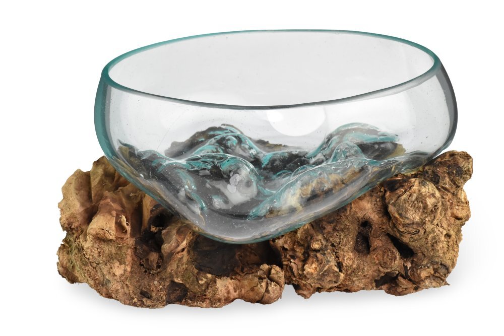 Skleněná mísa na dřevě 20 cm velká - var. N