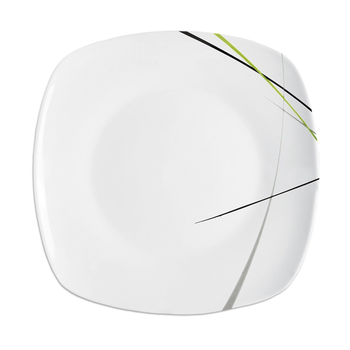 Talíř mělký hranatý s dekorem. Materiál: porcelán. Rozměry: 24x24 cm. Vhodné do myčky na nádobí, ale z důvodu použití mycích prostředků do myčky na nádobí může dojít k rychlejšímu opotřebení materiálu u dekoru - omytí dekoru, není důvodem reklamace. číst celé