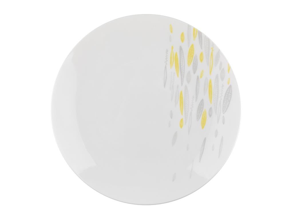 Materiál: Nový porcelán Bon China Rozměry: průměr 26,5 cm; výška: 2,8 cm; hmotnost: cca 685g Autorská dekorace Vytvořte si vlastní nádobí. K tomu účelu používejte nádobí z kolekce Autumn, které se vyznačují svým původním designem v šedé a žluté barvě, mezi návrhy najdete mimo jiné mělký talíř o průměru 26,5 cm. Je vyroben z lehkého a odolného porcelánu New Bone China a je vhodný do mikrovlnné trouby a mytí v myčce nádobí. Bezpečný kontakt s potravinami, žádným způsobem neovlivňuje chuť nebo vůni jídla.