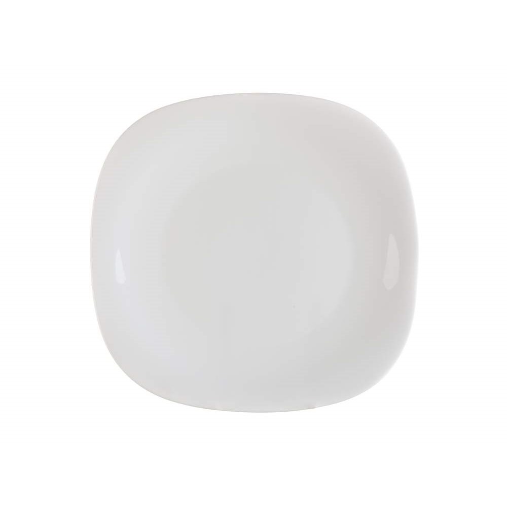 Talíř hranatý mělký bílé barvy. Materiál: opálové sklo. Rozměry: 26,5x26,5x2,5 cm. Vhodný do myčky i MVT. Max. 100 °C.