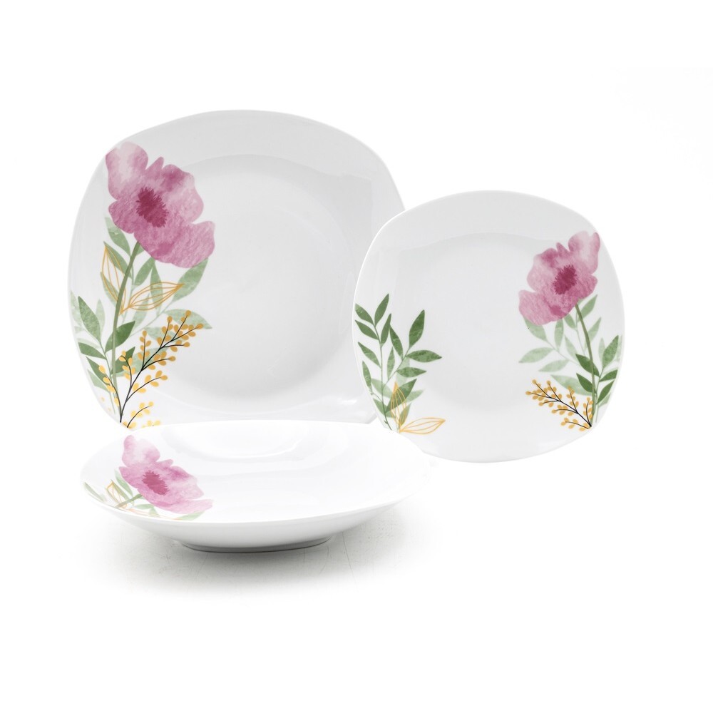 HOME ELEMENTS Jídelní set 6ks talíř,6ks polévkový talíř,6ks dezertní talíř,Růžový mák
