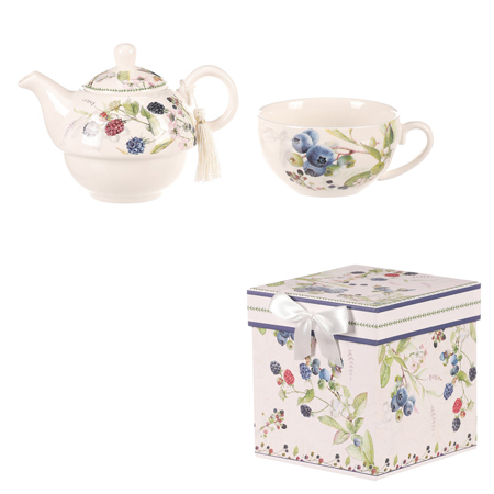 Vykouzlete úsměv na tváři vašich přátel, členů rodiny, či kolegů, případně udělejte radost klidně i sami sobě, darováním této nádherně malované sady, sestavené z konvičky a šálku v dárkovém balení. S jejich pestrobarevnými motivy lesních plodů na bílém pozadí, se budou na vaší poličce skutečně vymykat. Krabička i její porcelánový obsah mají totožný ozdobný motiv, na který je prostě radost se dívat.