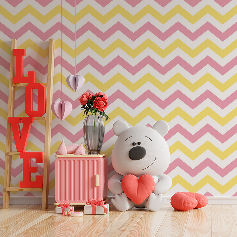 Tapeta Růžové a žluté klikyháky: 336x220 cm