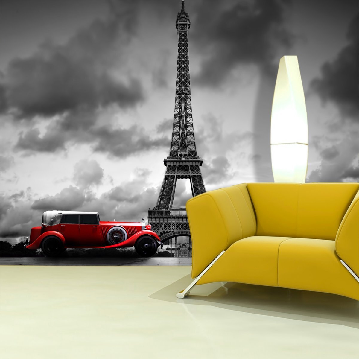 Tapeta Eiffelova věž a červené auto: 208x125 cm