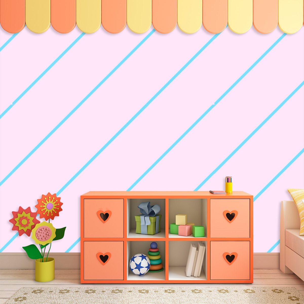 Tapeta Modré pruhy na růžové: 208x125 cm