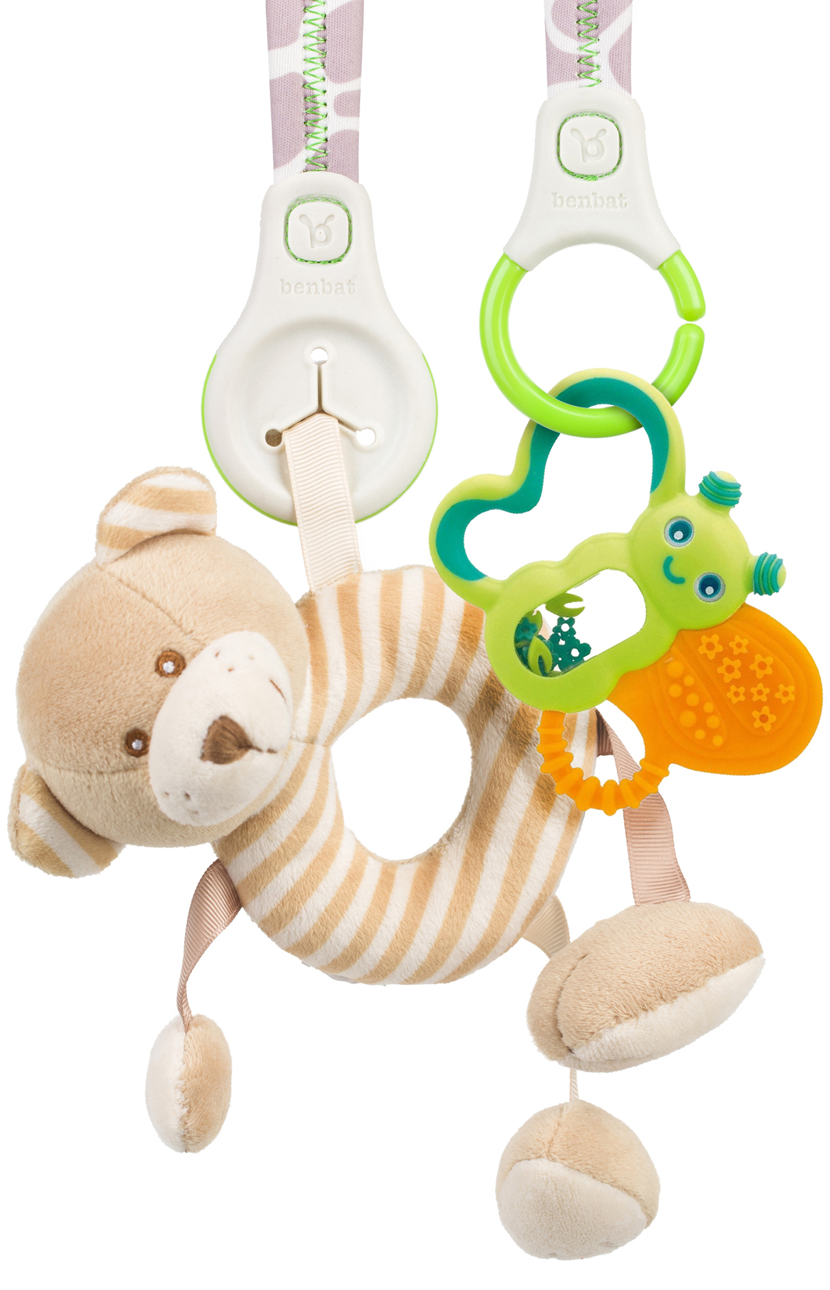 Tento cestovní kamarád zajistí, že budou mít rodiče i děti i na cestách vše po ruce. Praktický organizér má snadno dostupné, bezpečné háčky, na které lze připevnit dva nejdůležitější věci jako je dudlík, plena nebo oblíbená hračka. Navíc pomáhá rozvíjet koordinaci dítěte. Snadné a rychlé upevnění na kočárek, přebalovací tašku nebo autosedačku.