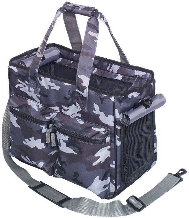 Přepravní taška Nobby Todor na psa či kočku (do 7 kg), vyrobeno odolného omyvatelného mikrovlákna. Integrovaná karabina uvnitř tašky zabraňuje vašemu pejskovi ve vyskočení ven. Větrání zajištěno ze 2 stran, zaručuje tak cirkulaci vzduchu uvnitř i při zavřené tašce. S ramenním popruhem a rukojetí. 2 velké kapsy na chovatelské potřeby. Rozměry: 40 x 21 x 30 cm (délka x šířka x výška). Nosnost max. 7 kg. Barva maskáčová. Udržba: Tašku čistěte vlhkým hadříkem. S odnímatelným dnem.