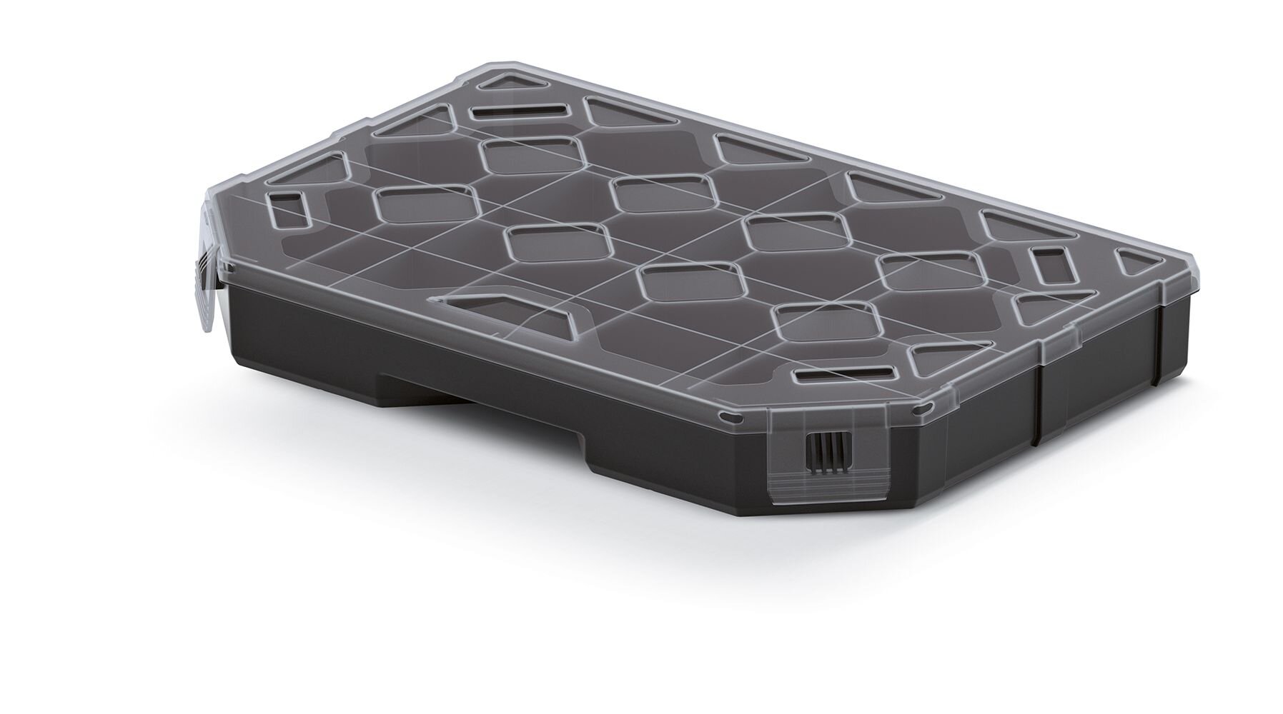 Organizér TAGER (přepážky) 284x195x40 mm - barva: černá s transparentním víkem
