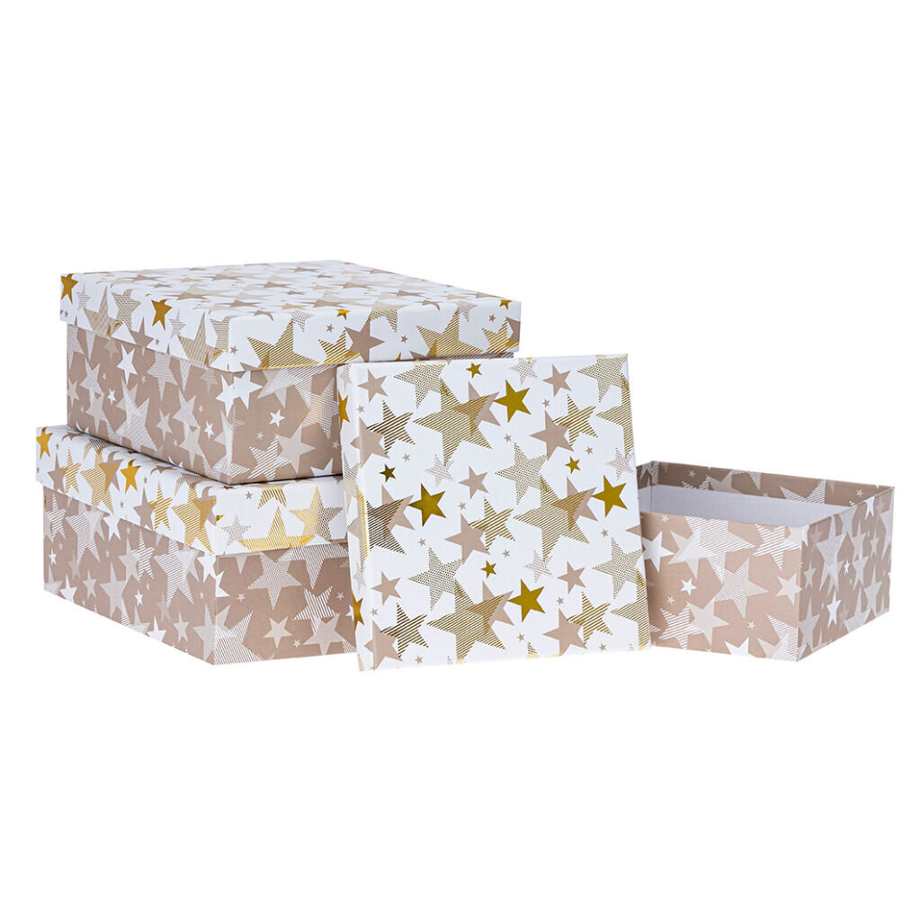 Sada dárkových krabic.Rozměry: 14,5 x 14,5 x 7 cm; 17,5 x 17,5 x 9 cm; 20 x 20 x 11 cm číst celé