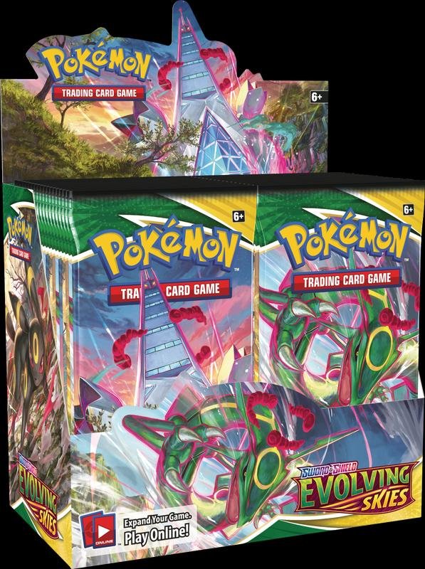 Pokémon Sword and Shield - Evolving Skies je sedmá edice ze Sword and Shield série sběratelské karetní hry Pokémon. V boosteru najdete 10 náhodně namíchaných karet z celé edice a díky těmto kartám si můžete vylepšit svůj herní balíček nebo vaši sbírku karet. Rozšiřující doplňkový balíček nabízí hráčům možnost, jak si rozšířit a vylepšit balíček nebo sbírku o nové karty. Je vhodný jak pro začátečníky, tak ostřílené hráče. Uvnitř boosteru najdete následující druhy karet: • 5x Common kartu • 3x Uncommon kartu • 1x Reverse holo kartu (náhodná common, uncommon, rare) • 1x Rare kartu • 1x Kartu energie • 1x Kartu s kódem do Pokémon TCG Online Edice Sword and Shield 7 - Evolving Skies vychází v pátek 27. srpna 2021, obsahuje více než 190 karet včetně 18 nových Pokémonů-V, 15 silných Pokémonů-VMAX. Někteří Pokémoni jsou opět obohaceni o nové bojové styly Rapid Strike a Single Strike a nově se vrací dračí typy. Z Pokémonů V zde najdete: Leafeon V, Trevenant V, Volcarona V, Gyarados V, Glaceon V, Arctovish V, Dracozolt V, Espeon V, Golurk V, Sylveon V, Medicham V, Lycanroc V, Umbreon V, Garbodor V, Rayquaza V, Noivern V, Duraludon V, Suicune V. Z nových a silných Pokémonů VMAX zde najdete: Leafeon VMAX, Trevenant VMAX, Flareon VMAX, Gyarados VMAX, Vaporeon VMAX, Glaceon VMAX, Jolteon VMAX, Dracozolt VMAX, Espeon VMAX, Sylveon VMAX, Lycanroc VMAX, Umbreon VMAX, Garbodor VMAX, Rayquaza VMAX, Duraludon VMAX.