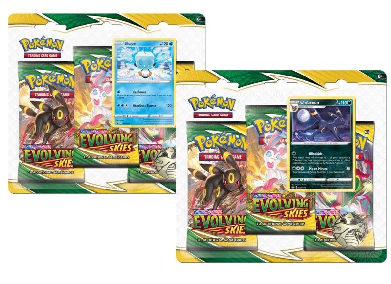 Pokémon Sword and Shield - Evolving Skies je sedmá edice ze Sword and Shield série sběratelské karetní hry Pokémon. V boosteru najdete 10 náhodně namíchaných karet z celé edice a díky těmto kartám si můžete vylepšit svůj herní balíček nebo vaši sbírku karet. Rozšiřující doplňkový balíček nabízí hráčům možnost, jak si rozšířit a vylepšit balíček nebo sbírku o nové karty. Je vhodný jak pro začátečníky, tak ostřílené hráče.