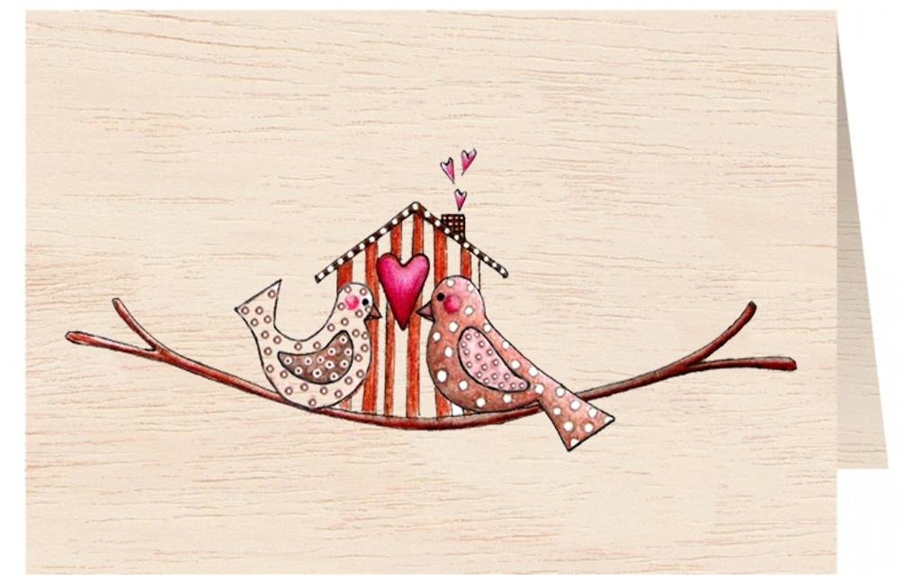 Karnet drewniany C6+koperta Ślub ptaszki na gałęzi