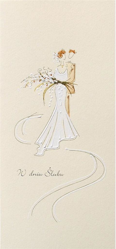 Karnet Ślub DL SDF02 - Para Młoda z bukietem