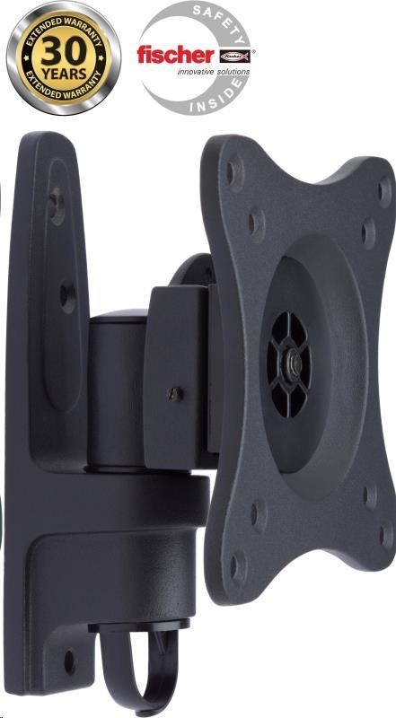 Záruka na vybrané modely je 30 let. Vyznačují se kvalitními materiály, precizním dílenským zpracováním a snadnou montáží. Nesetkáte se u nich s vůlí v kloubech ani nepříjemným vrzáním. Součástí balení každého držáku je sada univerzálních UX hmoždinek renomované německé značky FISCHER s pojistkou proti protočení v otvoru umožňující kotvení do všech druhů stavebních materiálů (plných, dutých i deskových). Všechny TV držáky jsou testovány na trojnásobek uváděné nosnosti. CONNECT IT A4BK nástěnný držák na obrazovky se zárukou 30 let Min. úhlopříčka obrazovky: 13" (33 cm) Max. úhlopříčka obrazovky: 27" (69 cm) Náklon nahoru: 15° Náklon dolů: 15° Natočení do stran: +/-90° Nastavení do požadovaného úhlu nevyžaduje povolení ani opětovné utažení šroubů (stačí pouze uchopit okraje TV a nastavit úhel) Možnost rotace obrazovky o 360° Vzdálenost TV od zdi: 88 mm Maximální nosnost: 15 kg Kompletní seznam podporovaných roztečí VESA: VESA 75x75 VESA 100x100