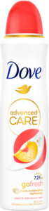 Dopřejte si 72hodinovou ochranu, svěžest a péči s Dove Advanced Care antiperspirantem s vůní broskve a květů bílé broskvoně. Díky inovativní Triple Moisturizing Technology poskytuje nejen účinnou ochranu proti pocení a zápachu, ale zároveň pečuje o pokožku podpaží. Navíc nezanechává bílé stopy na barevném oblečení - už žádné kompromisy mezi módou a pohodlím.