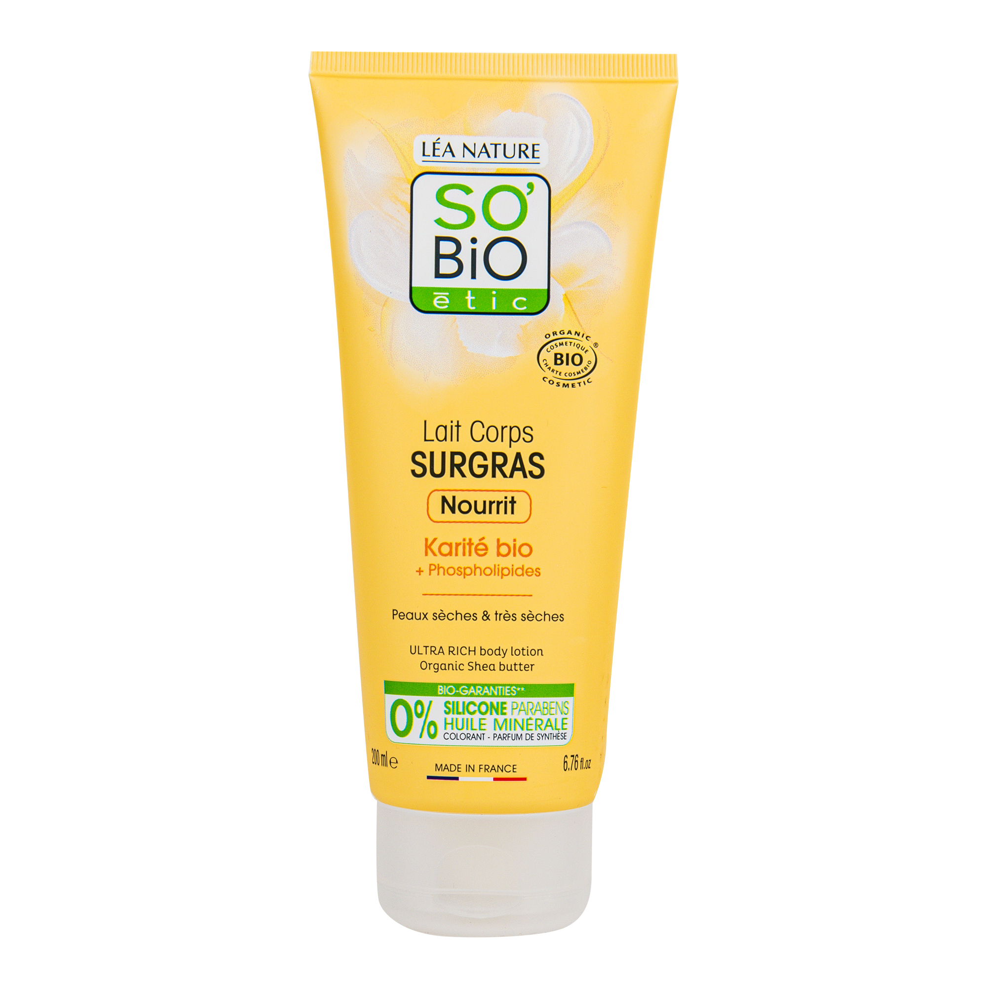 Pro suchou až velmi suchou pokožku. Ultra výživné s bambuckým máslem a fosfolipidy. Přináší zvláčnění a vyživení pokožce celého těla. Neobsahuje žádné silikony, parabeny, minerální oleje. Parfemace je 100% přírodního původu. Tuba je vyrobena z rostlinného plastu.