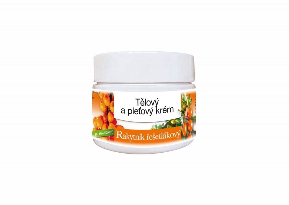 Tělový a pleťový krém je velmi lehký, rychle se vstřebávající krém s univerzálním použitím. Obsahuje extrakt z plodů rakytníku řešetlákového s vitamíny, minerály, flavonoidy a sacharidy, bambucké máslo s přírodními UV filtry, ochranný vitamín E a další regenerační, zvláčňující a hydratační složky, jako jsou allantoin, panthenol, glycerin a inositol - vitamín B8, vitamín mládí a svěžesti. Krém pokožku zvláční, hydratuje a doplní chybějící tuky. Po použití bude pokožka vláčná, napnutá, s hedvábným leskem. Chrání pokožku před stárnutím vlivem volných kyslíkových radikálů. Balzám využívá moderní akrylátový emulzní systém a je tedy velmi jemný. Rychle se vstřebává, na pokožce zanechává příjemný nemastný pocit. Používejte pravidelně po práci a mytí rukou.