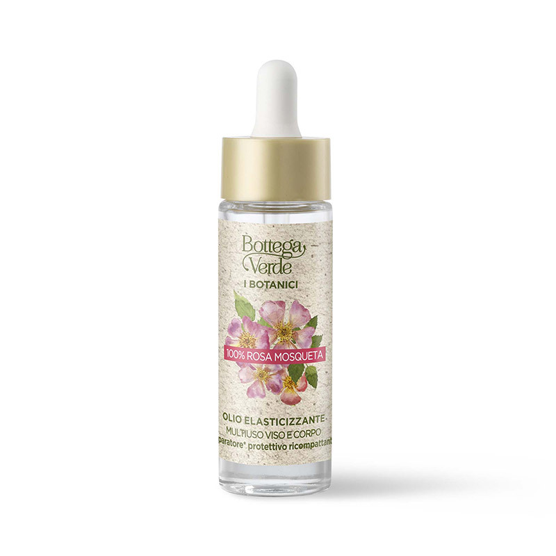Mošusový olej: 100% přírodní, extrahovaný ze semínek mošusové růže. Jedná se o divoce rostoucí odrůdu, která spontánně roste v Jižní Americe, hlavně v Chile. Je výbornou prevencí před stárnutím, má regenerační a hydratační účinky na pokožku, zlepšuje její vzhled a napomáhá hojení jizev a strií.