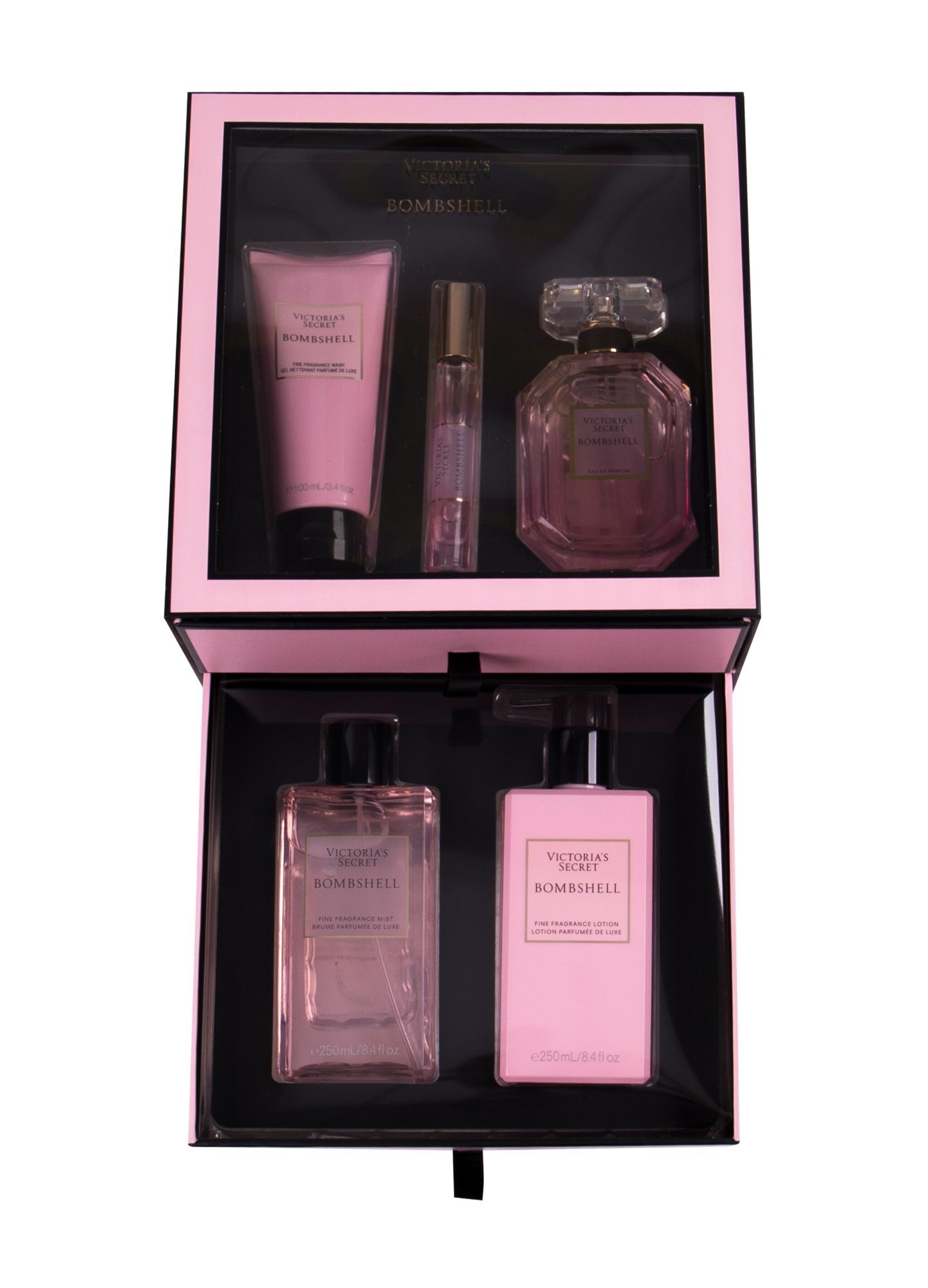 Victoria´s Secret Bombshell parfémovaná voda 100 ml + parfémovaná voda rollerball 7 ml + sprchový gel 100 ml + vyživující tělový sprej 250 ml + tělové mléko 250 ml