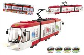 Tramvaj červená plast 43cm na baterie česky mluvící se světlem v krabici