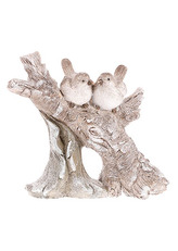 Ptáčci sedící na větvi, zimní dekorace z polyresinu