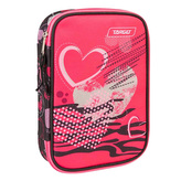 Školní penál s náplní Target Srdce, jednopatrový, růžovo-černý