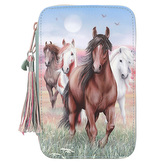 Penál s výbavou Miss Melody, Pastelové barvy, 4 koně na louce, třípatrový