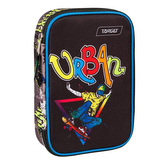 Školní penál s náplní Target Urban Jump, jednopatrový, šedo-žluté vzory