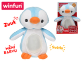 Lampička tučňák 22cm plyšový stojící měnící barvu na baterie se světlem a ukolébavkou 0m+ v krabičce