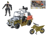 Auto vojenské 22cm na volný chod s motorkou 12cm a 2ks postaviček v krabičce