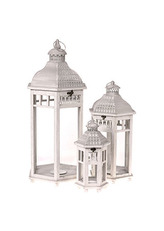 Lucerna dřevěná, barva bílá antik, cena za sadu 3ks.