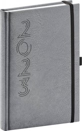 Diář 2023: Memory - stříbrný, denní, 15 × 21 cm