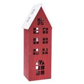 Dřevěný domek s LED svíčkou (15 LED), červený, 0/16