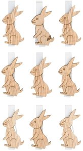 dekorace ZAJÍC na kolíčku, 4,5cm, dřevo, 9ks