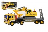 Kamion s přepravníkem 38cm plast s bagrem na setrvačník na bat. se světlem se zvukem v krabici