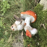 Dekorace ptáček sedící na houbě s veverkou 17x12 cm