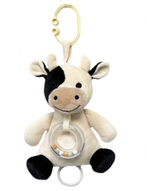 Závěsná plyšová hračka s chrastítkem Kravička, 18 cm, krémová
