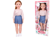 Panenka chodící 70cm zrzka s riflovou sukní v krabičce