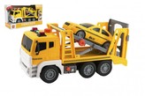 Auto kamion přepravník+1 auto plast na setrvačník na bat. se zvukem se světlem v krabici 36x21x14