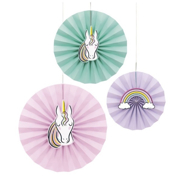 Jemné a poutavé závěsné rozety s motivem jednorožců a duhy. Papírové rozety ve velikostech od 20 do 30 cm v balení které obsahuje tři rozety. Určitě skvěle nedekoruje Vaši narozeninovou oslavu.Materiál: PapírRozměry: 20 až 30 cmBalení: 3 ks číst celé
