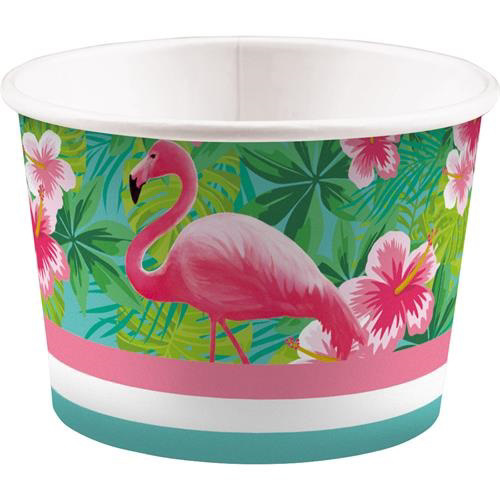 Papírové kelímky na zmrzlinu flamingo (plameňák). Vhodné na jakýkoliv druh oslavy nebo party, především na tématickou party pro dospělé Flamingo. Objem: 270 ml. Balení: 8 ks.