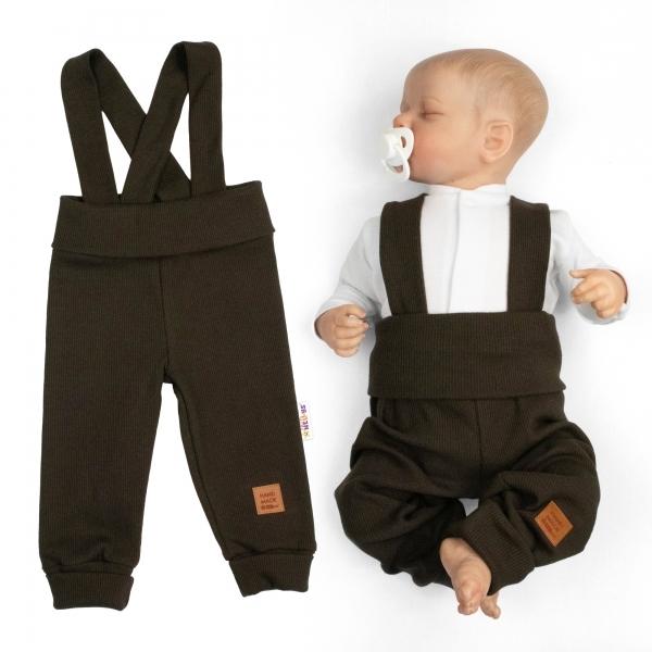 Rostoucí legíny se šlemi, žebrované s širokým pásem - čokoláda, hnědá; 56/62 (0-3m)