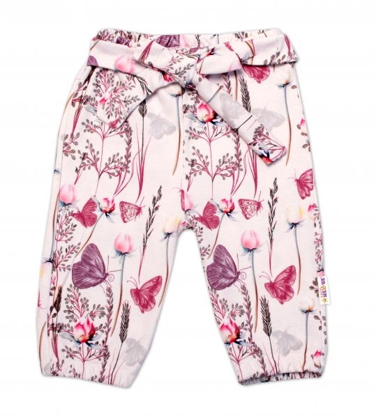Baby Nellys Tepláčky s ozdobným páskem Motýlci - růžová; 62 (2-3m)