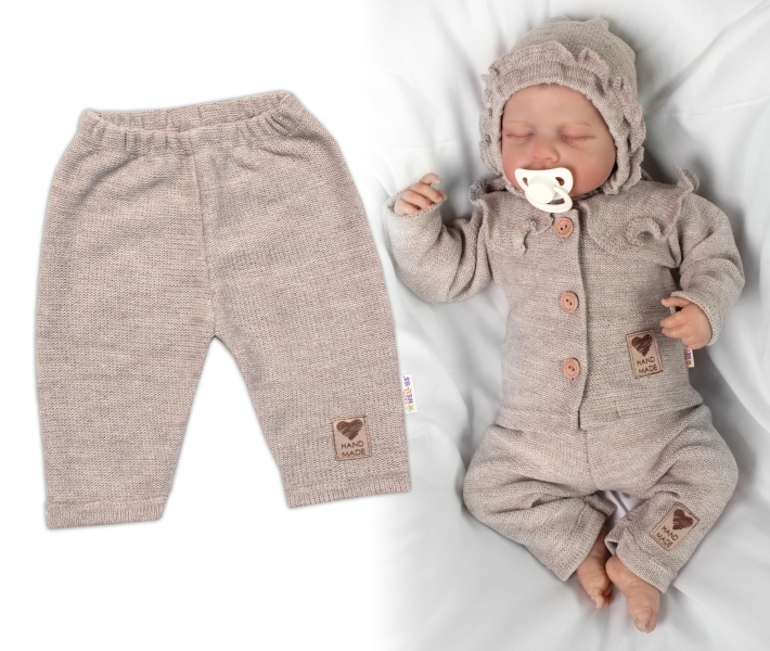 Pletené kalhoty Hand Made Girl, Baby Nellys, béžové, vel. 62; 62 (2-3m)