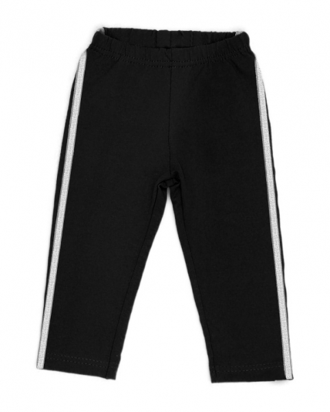 Mamatti Bavlněné legíny, tepláčky s ozdobným bočním stříbrným páskem Bow - černé,vel. 104; 104 (3-4r)