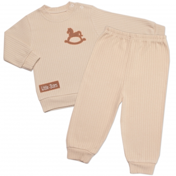 Tepláková žebrovaná souprava, Horse 2D, bavlna, béžová, vel. 80