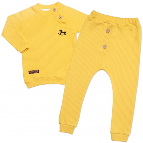 Tepláková žebrovaná souprava s knoflíčky, Horse 2D, bavlna, žlutá, vel. 80