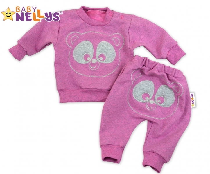 Tepláková souprava Baby Nellys - Medvídek - růžový melír, vel. 68; 68 (3-6m)