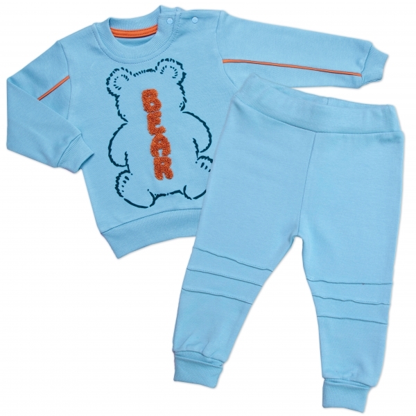 Tepláková souprava Bear 2D, bavlna, modrá; 74/80 (9-12m)